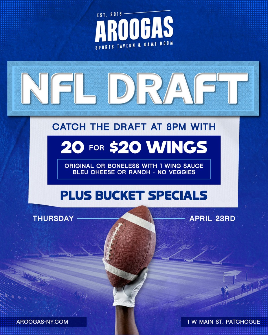 It’s Draft Night — and there’s no better place to watch it go down than Arooga’s Patchogue.